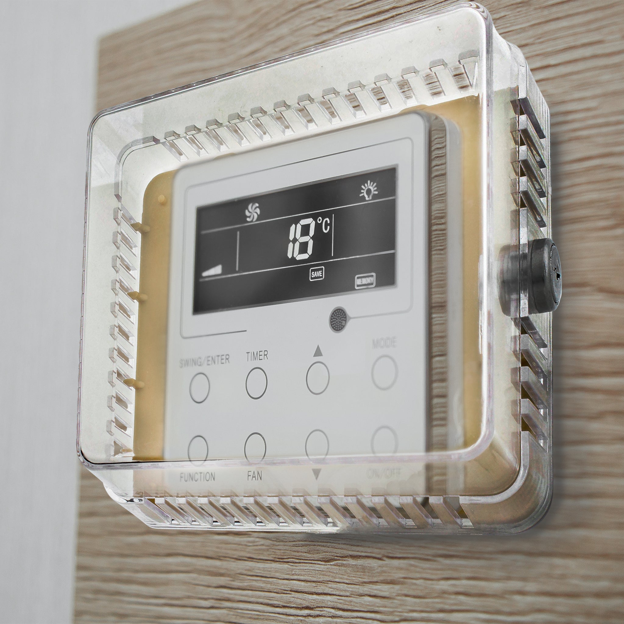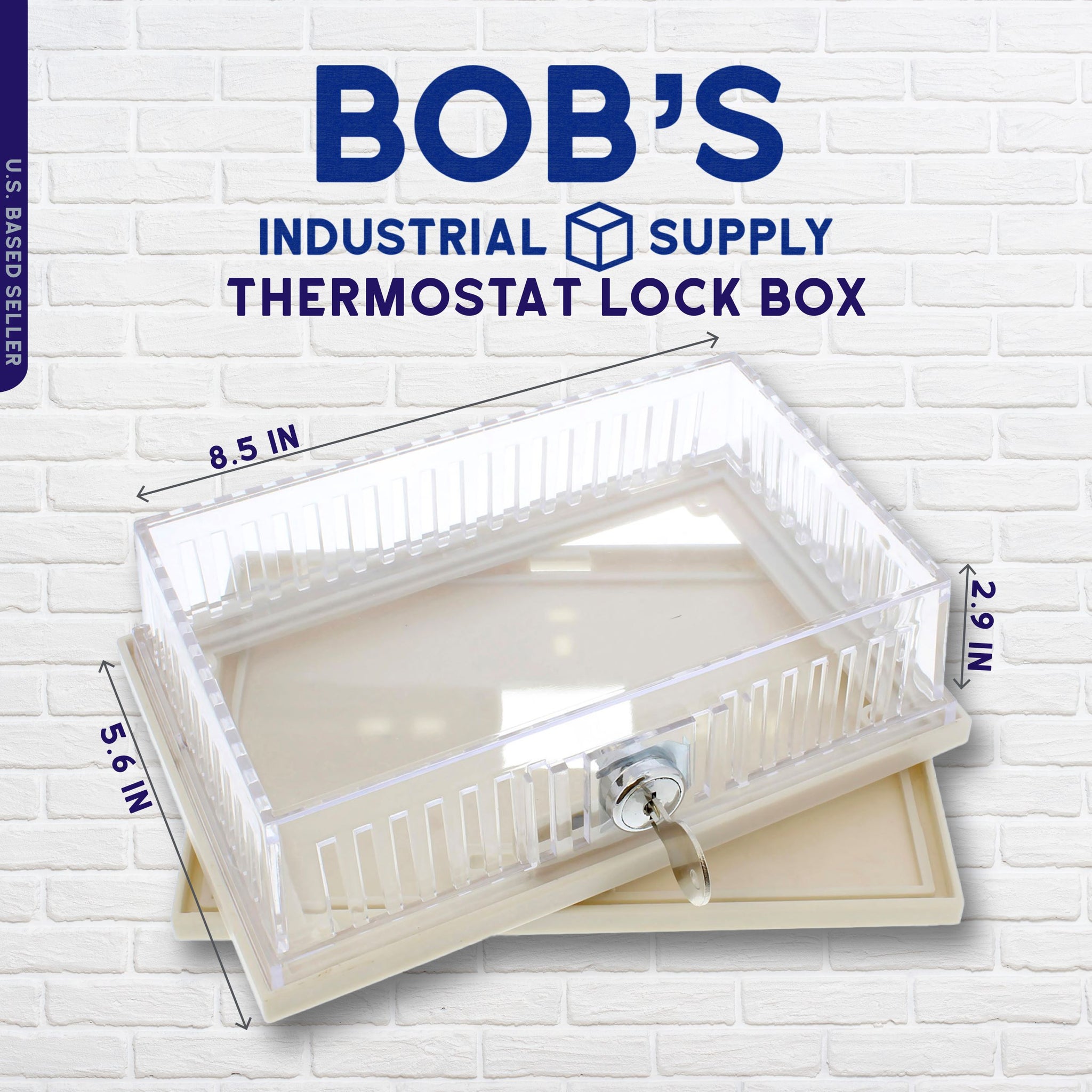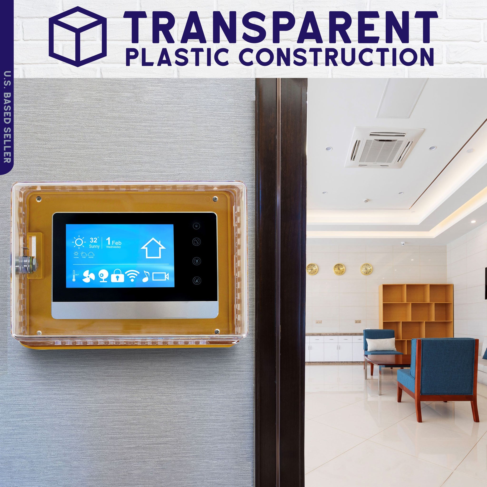 [Decrease Energy Bills]: The BISupply Thermostat Cover Lock is a clear lock for air condition and heat control; Transparent plastic to clearly see your unit while preventing tampering [Fit Your Thermostat]: Measure long side of your thermostat including temperature setting levers and add 1in (2.54cm) to determine correct fit [Temperature Stability]: Thermostat box cover with lock is ventilated on all 4 sides to avoid interference with detection of current temperature [Easy to Install]: Mount the opaque backplate to the wall, then thermostat to backplate and fix lock cover frame with hinged cover over unit while attached to wall [Contents]: Includes 1 - thermostat lock cover with detachable base, 1 - key, and 4 - mounting screws; Phillips screwdriver not included