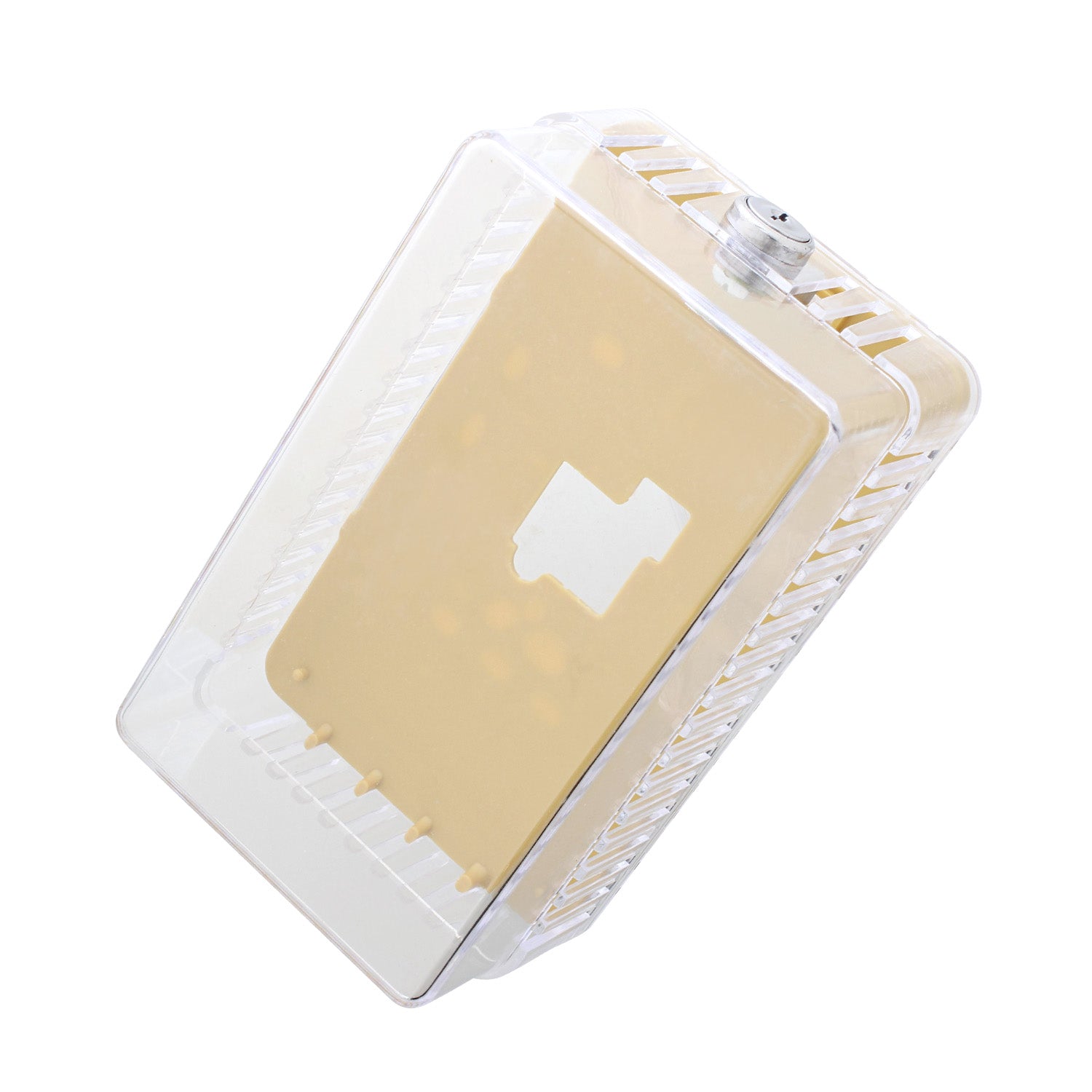 Prevent people from overly fluctuating the temperature on your thermostat and keep the peace with the BISupply AC Control Lock Box for Thermostat on Wall. 6.25 x 3.7 x 2.7 inch (15.9 x 9.4 x 6.9cm) internal dimensions for rectangular and round units vertically or horizontally - Measure your thermostat height including temperature setting levers and add 1 inch for fitment. Consider one size larger than your thermostat so you can reach in to change thermostat batteries. Includes open hinge (on left or right depending on installation) that lifts up and off when unlocked. Other locking thermostat covers require mounting the hinge side at least 1-inch from any door molding, but the open hinge 2-piece design on our thermostat covers with lock can be installed anywhere.