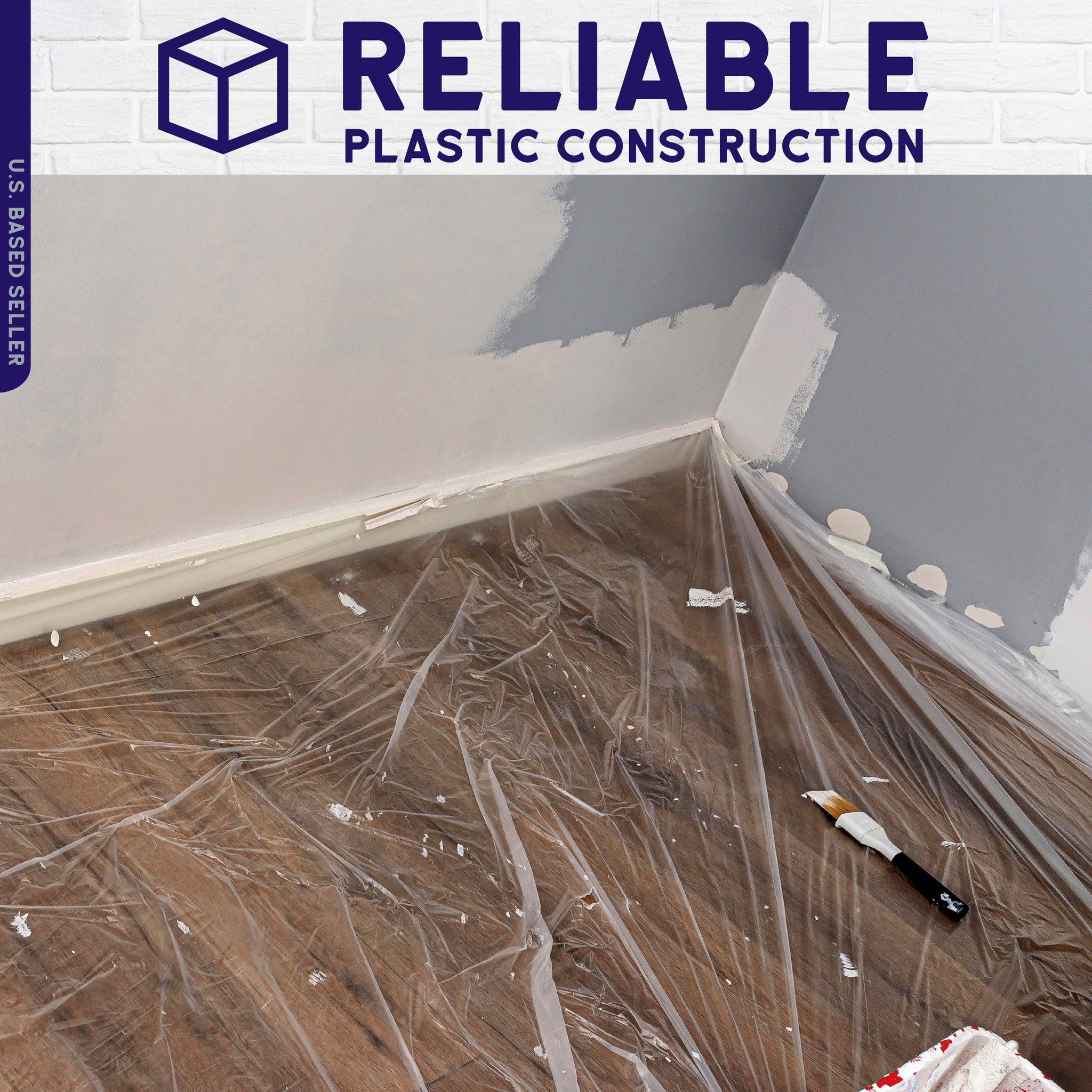 Whether you are painting a room or washing a pet, you want to keep your carpet safe from spills, paint drips, mud, dust, and debris. Messy projects can ruin your floors and furniture. Do not take the chance of ruining your bedsheets, and do not rely on smudged newspaper to protect surfaces while painting. The Bob’s | Plastic Floor Covering Protective Film handles paints, stains, and home improvement projects easily. Use this carpet plastic protector film to protect your indoor and outdoor floors, furniture, equipment, and more while painting, staining, or renovating any area. Choose between a 24-inch (61cm) wide or 36-inch (91cm) wide roll that rolls out on top of your carpet with the sticky side down and the smooth side up. For temporary protection; Not intended for permanent placement.