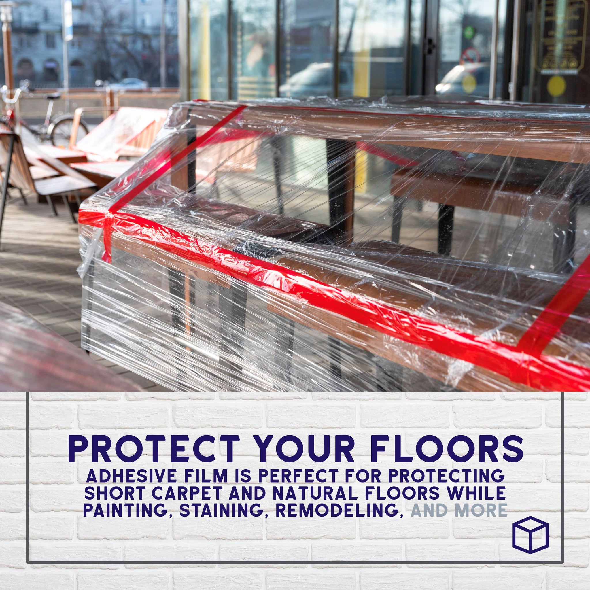 PROTECT YOUR FURNITURE: The Bob’s | Carpet Adhesive Floor Covering will protect and preserve furniture, floors, and equipment indoors or outdoors while painting, staining, remodeling, and more; Waterproof to keep stray paint and debris away from your project for easy cleanup PERFORM OIL CHANGES ANYWHERE: Roll out the clear carpet protector floor cover on your car carpet to avoid oil spills during vehicle maintenance and service KEEP OUT DRAFTS: Use this durable floor protection plastic film as a protective layer to fully cover broken windows or keep out cold drafts CHOOSE YOUR SIZE: Choose between a 24-inch (61cm) wide or 36-inch (91cm) wide film; Both films offer ample protection for home improvement projects and to fully cover your furniture, wall, flooring, and more; Approximate 2 mil typical thickness makes this plastic carpet protector roll have high transparency while retaining ultimate durability EASY TO USE: Roll out on top of carpet with sticky side down and smooth side up to temporary protection (not intended for permanent placement); When finished using, easily peel up without leaving residue on your carpet
